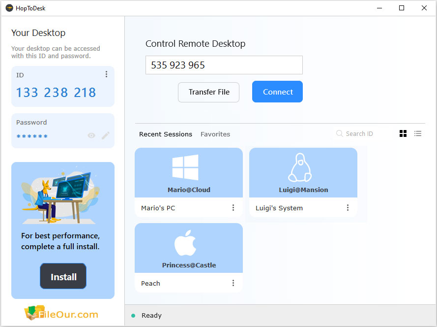 Its speciality is that it is portable software that can be used without installation. Run HopToDesk latest version and you will see a simple interface. In the left panel, you will show a unique ID and password. Your desktop can be accessed with this ID and password.